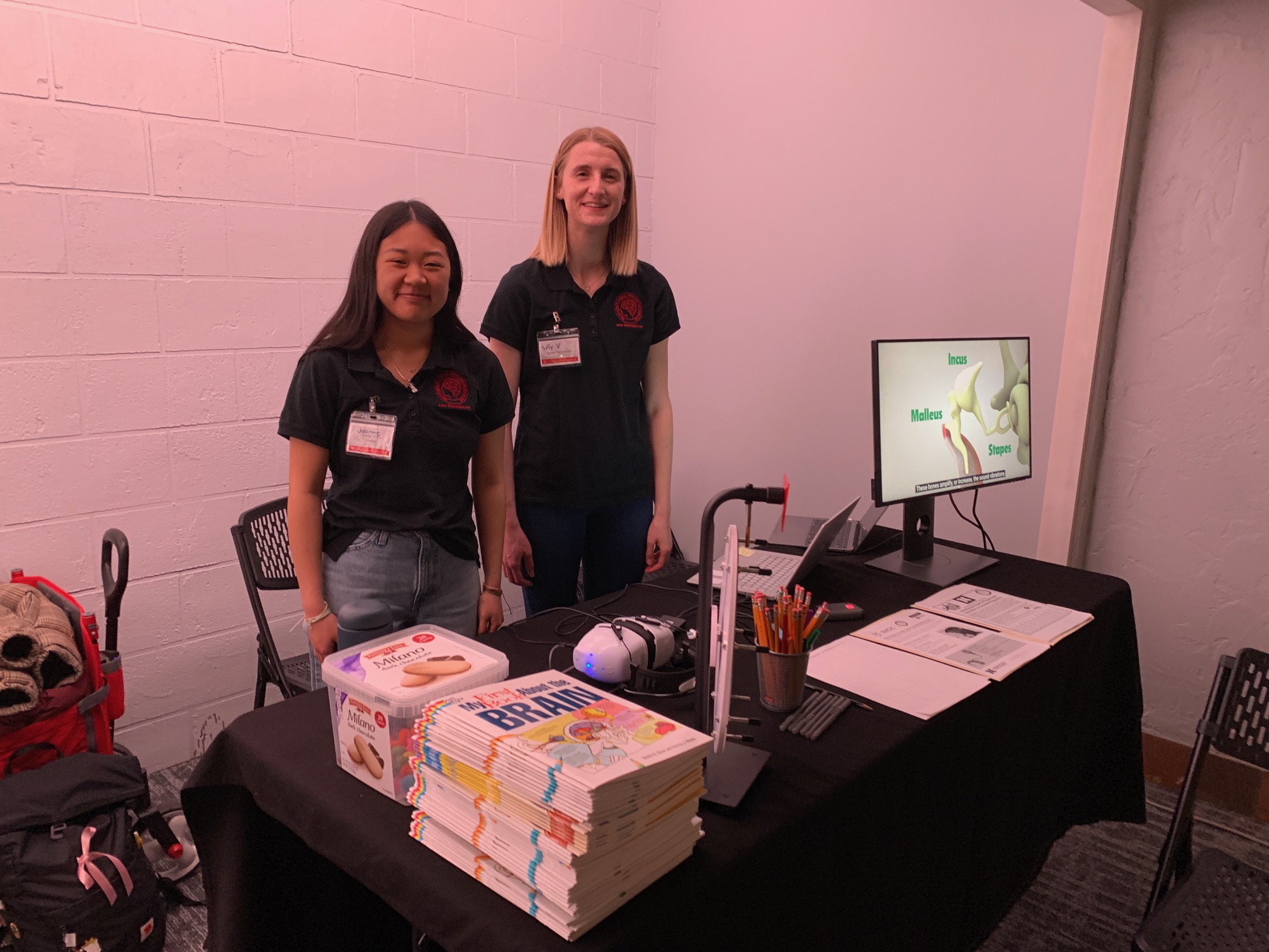 On 3/24/2024 (Sunday), Wang and NL3 Lab team members (Kelly [left] and Joanne [right] in the first photo) set up a station for the outreach event “BrainStorm 2.0” at the University of Nebraska Museum (Morrill Hall). In the first photo, Kelly and Joanne used a portable device called Kuduwave Pro to examine a young child’s pure tone threshold at different frequency bands. We had many families stop by our station and learn about the science of hearing.