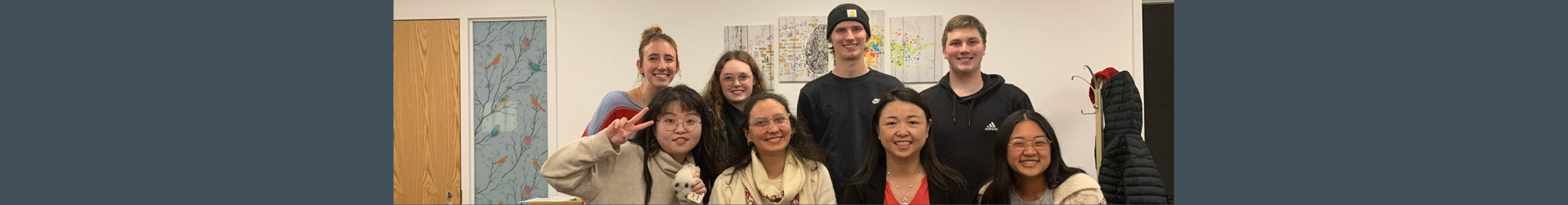 On Friday, December 6, 2024, Dr. Wang (first row, third from the left) and the available Neuroimaging for Language, Literacy and Learning Laboratory (NL3) team, Dania Javaid (first row, 2nd from the left), Luke Kortus (second row, 3rd from the left), Joanne Vuong (first row, fourth from the left), Caden Anderjaska (second row, fourth from the left), Chen Liang (first row, 1st from the left), KayLei Svendsen (second row, 2nd from the left), and Lauren Winn (second row, 1st from the left), gathered at NL3 lab BKC 101X suite for the annual holiday party. Dr. Wang prepared yummy food for the team, and Dania led a meditation session for the team to get relaxed before the final’s week. Everyone had a great time. The bingo game for ice-breaking and the white elephant gift exchange were fun. Like the mini golf, everyone got competitive when the basketball-throwing game started. What a relaxing and joyful night! Before the holiday season starts, we celebrated earlier as a team and got to know each other better too.