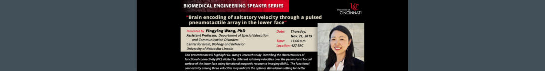 Wang went back to where she obtained her PhD and gave a talk on a collaborative project, “Brain encoding of saltatory velocity through a pulsed pneumotactile array in the lower face.”